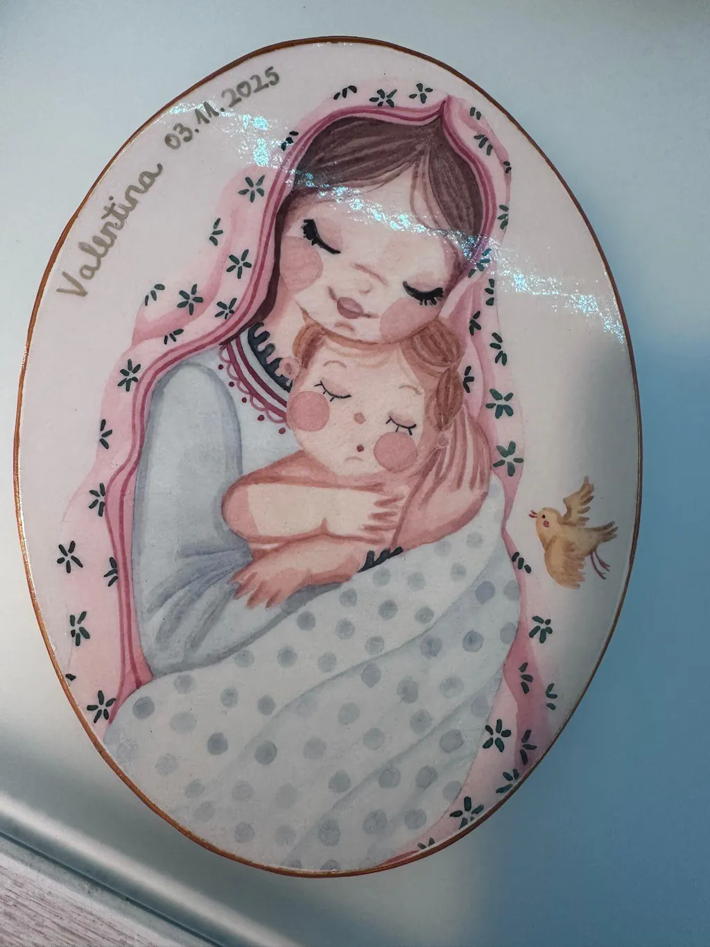 Nuestra "Virgencita de mi vida Carmen” representa la belleza y la ternura máxima de nuestra madre del Cielo hacia nuestros peques. La diseñamos de cero y fue la primera que preparamos sin esperar que el resultado fuera tan espectacular. De cerámica tradicional y ovalada para que destaque en la habitación o cuarto de estar. Se prepara una a una con mucha delicadeza.