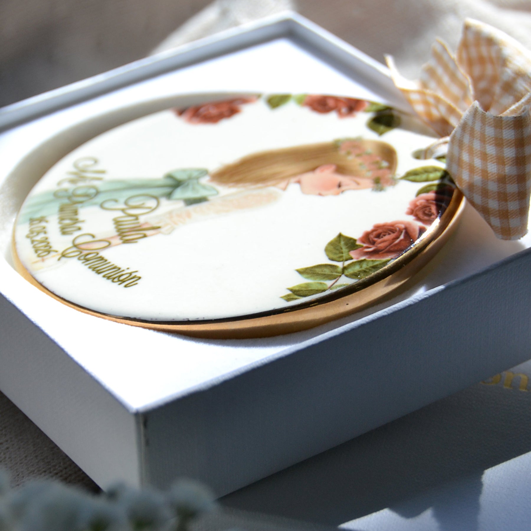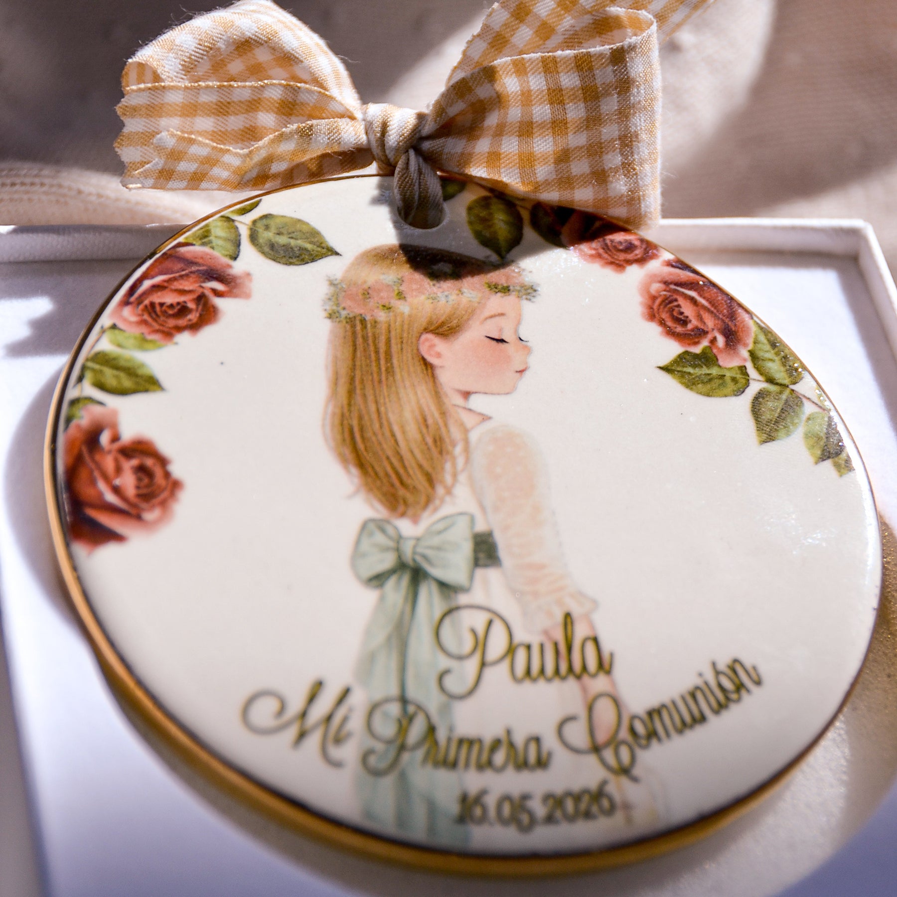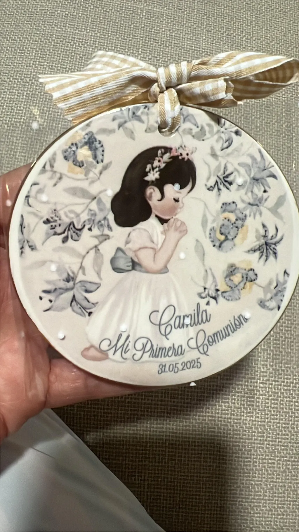 El medallón de cerámica para bautizo es precioso