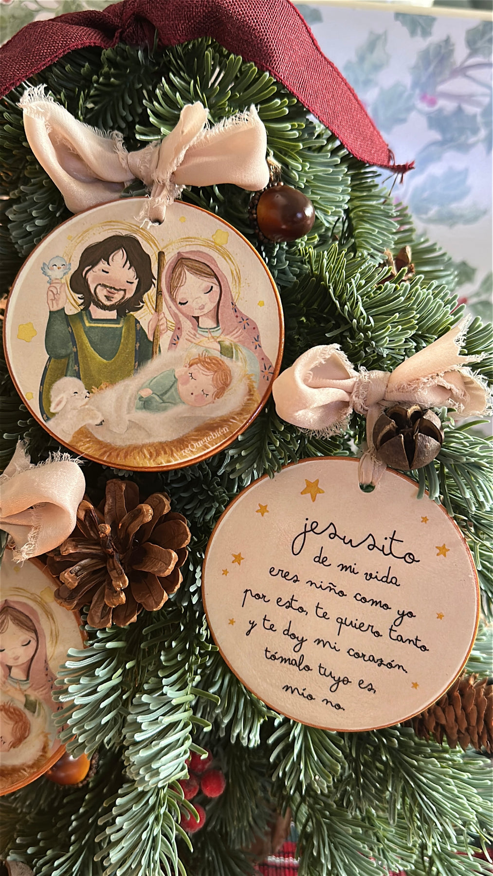 Nuestra "Sagrada Familia de Nazaret" está ilustrada en acuarela y creada en un torno artesano dentro de un taller de cerámica tradicional. Una a una, con mucho mimo para que adorne nuestras casas con belleza y tradición. Diseño a dos caras.