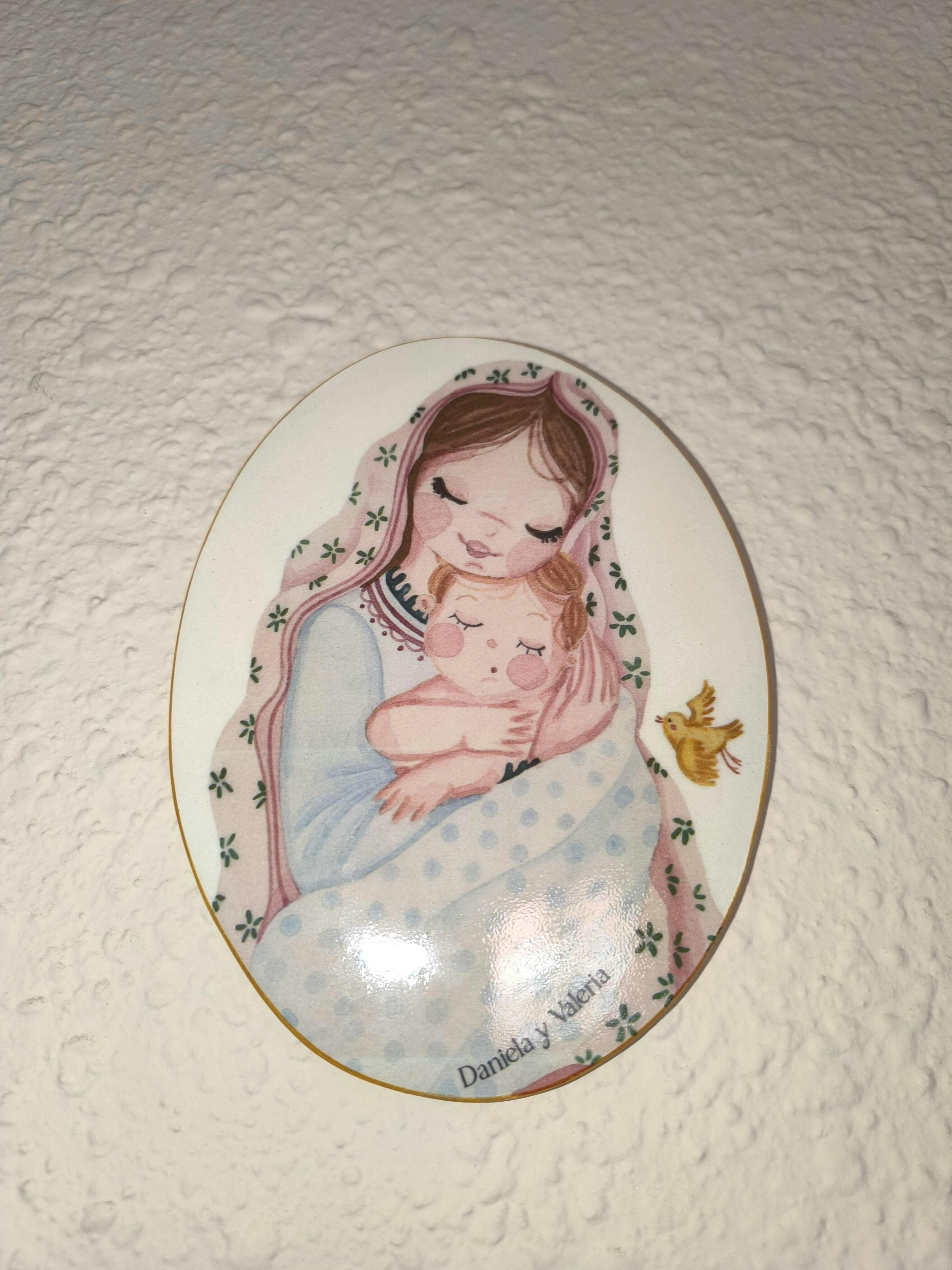Nuestra "Virgencita de mi vida Carmen” representa la belleza y la ternura máxima de nuestra madre del Cielo hacia nuestros peques. La diseñamos de cero y fue la primera que preparamos sin esperar que el resultado fuera tan espectacular. De cerámica tradicional y ovalada para que destaque en la habitación o cuarto de estar. Se prepara una a una con mucha delicadeza.